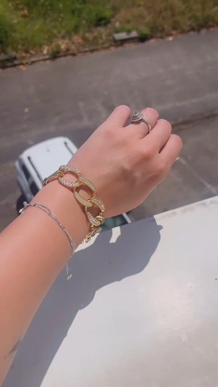 Superbe bracelet doré avec des cristaux Swarovski scintillants - parfait pour une allure chic de jour comme de nuit. Notez que comme tous les bijoux plaqués or, il est indispensable d'éviter tout contact avec l'eau, notamment l'eau de mer, pour préserver son éclat.